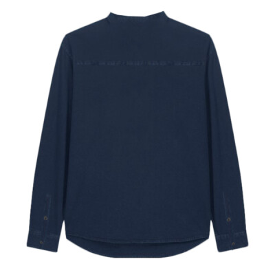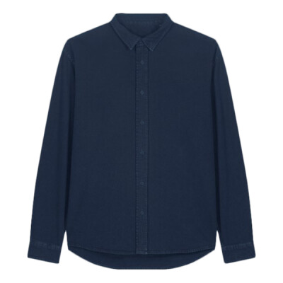 The Worker shirt. Relaxed unisex fit. Point collar with single-needle topstitches. Collar stand. Front placket with single-needle topstitches on each side. Forwarded shoulder. Back yoke. Inside yoke in self-fabric. Set-in sleeves. Sleeve placket with one button. Cuff with two buttons. Rounded cuff corners. Double pleats at cuff seam. Garment-Dyed Black Rock colour has a faded look on all seams due to garment washing. Garment-dyed product, so each garment may vary in appearance and colour may bleed – follow our care label. Read print recommendations carefully.