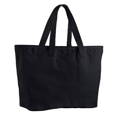 Premium heavyweight fabric. Extra large capacity. Zipped main compartment. Nylon zip with self-fabric pull. Two internal slip pockets. Self-fabric carry handles. Can be carried by hand or over the shoulder. CutAway label for ease of rebranding.