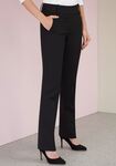 54% Polyester, 44% Wool, 2% LYCRA® Elastane. Tailored leg, front hook fastening, 2 side pockets, mock rear pockets, belt loops Half hem width at size 12R = 21cm