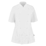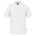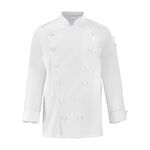 This professional kitchen jacket closes with a reversible right/left crossover bib, fitted with hand-made and sewn buttons. For greater comfort during service, “strap” cutouts create a discreet bend and the cuffs are slit. The PLATINE men's kitchen jacket is breathable thanks to the embroidered eyelets under the arms as well as the comfort volume formed by the elbow cutouts. This long sleeve kitchen jacket also has a blue/white/red braid at the back neckline, a thermo on the front panel and a double compartmented pocket for pens.