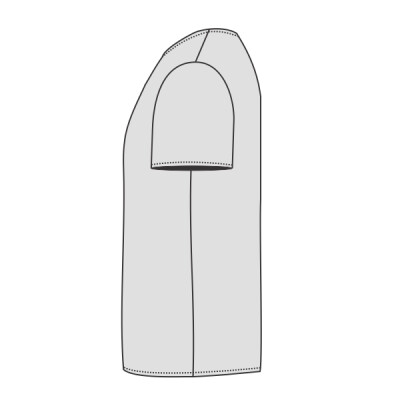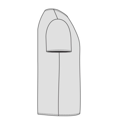 Single jersey. Fashion fit. Ribbed collar. Taped neck. Side seams. Twin needle sleeves and hem. Unbranded size label at neckline.